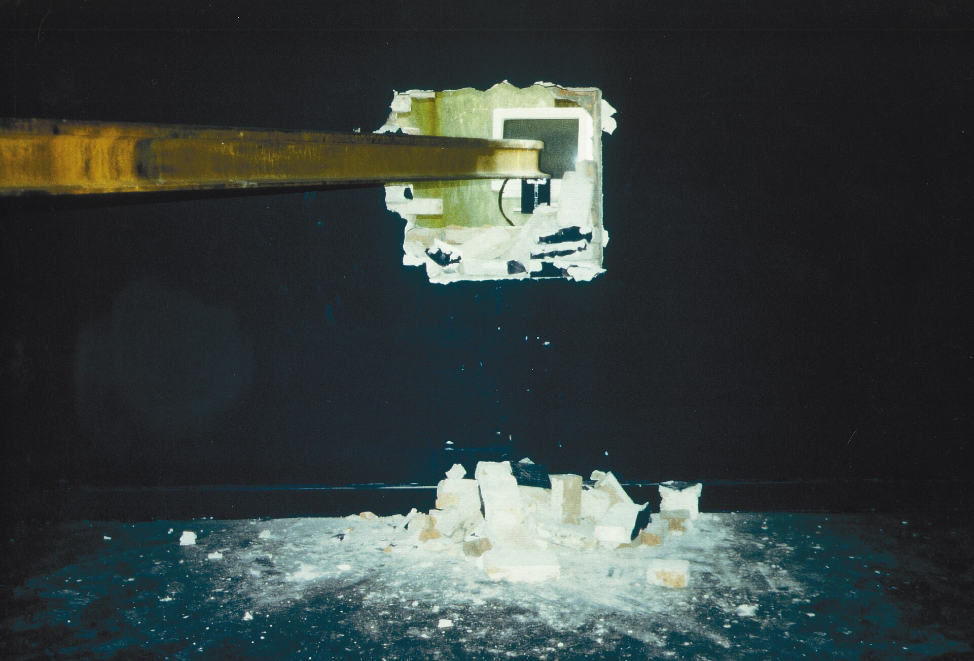 the speed of the flow of information made the space shrink to a point, at the same time the information stored in t.s. 4 burst the bonds of the surrounding austrian biennale pavilion. 11 days before the end of the biennale t.s. 4 broke through the wall of the austrian pavilion.